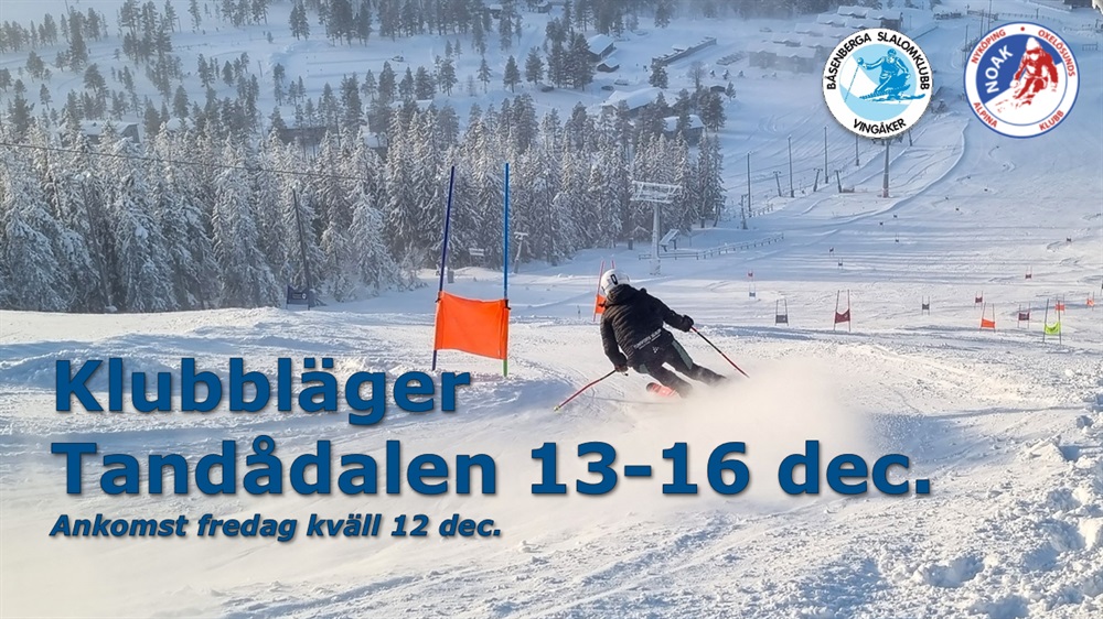Årets klubbläger är förlagt till Tandådalen i Sälen 12-16 december,